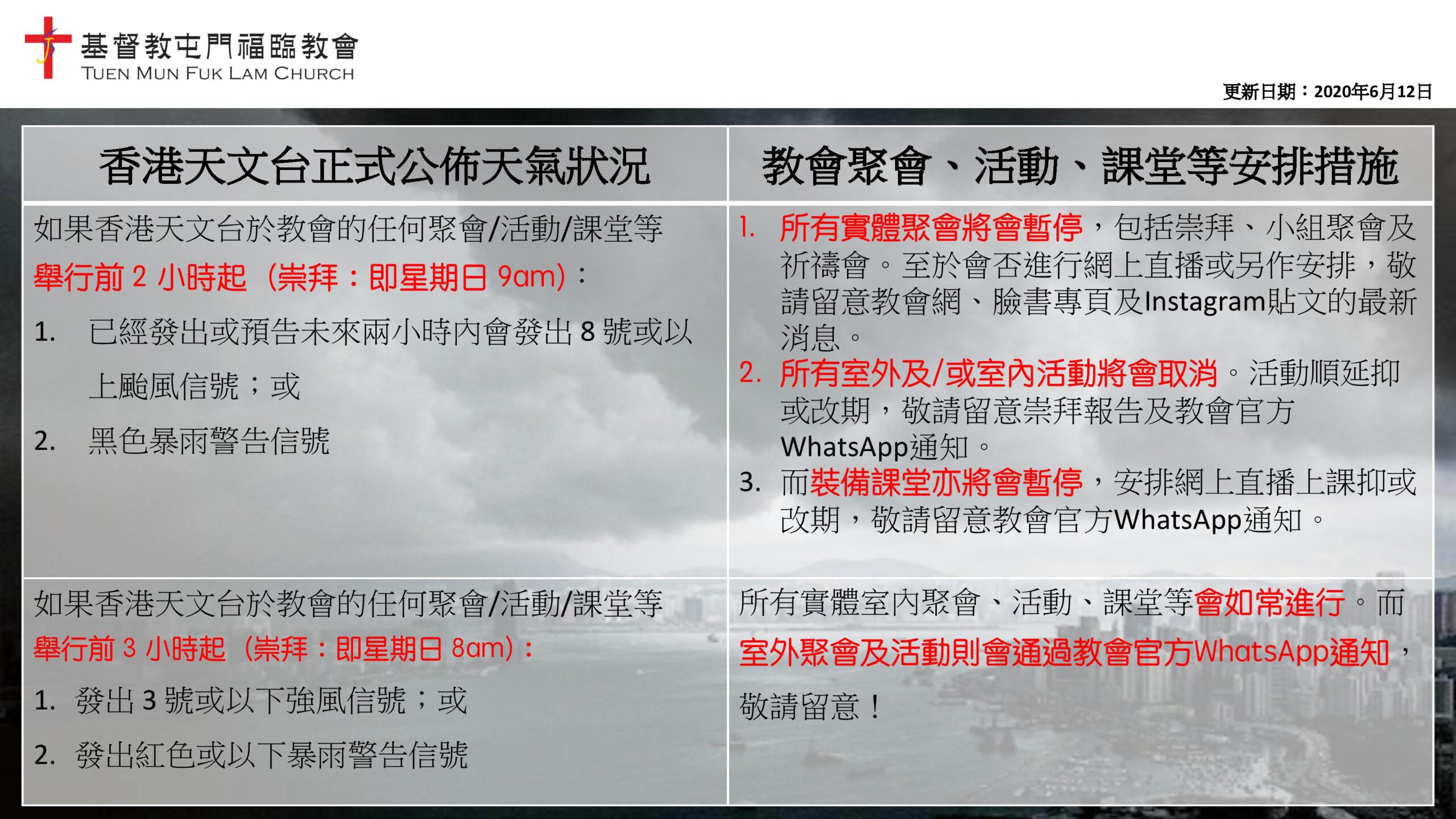 惡劣天氣安排 |